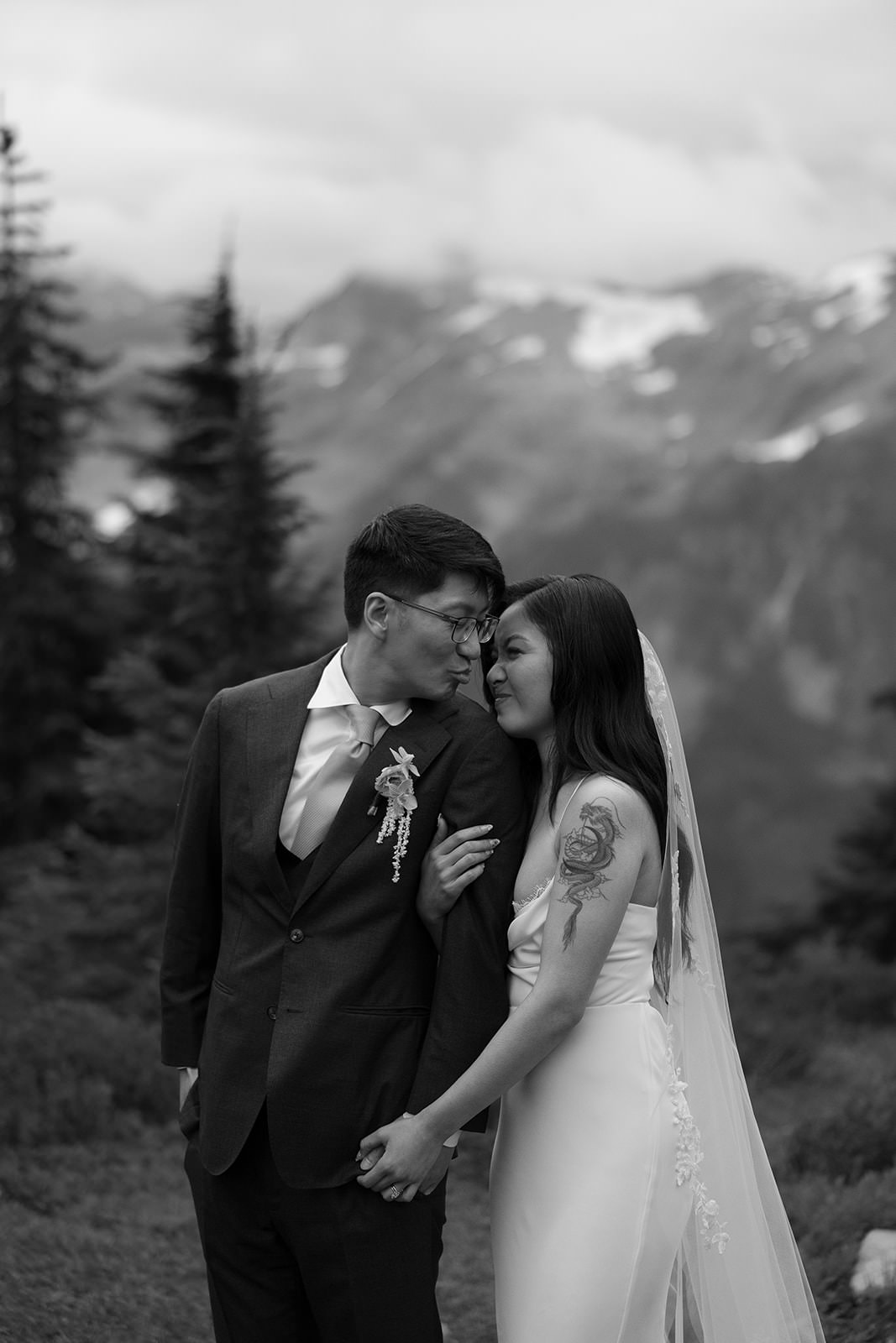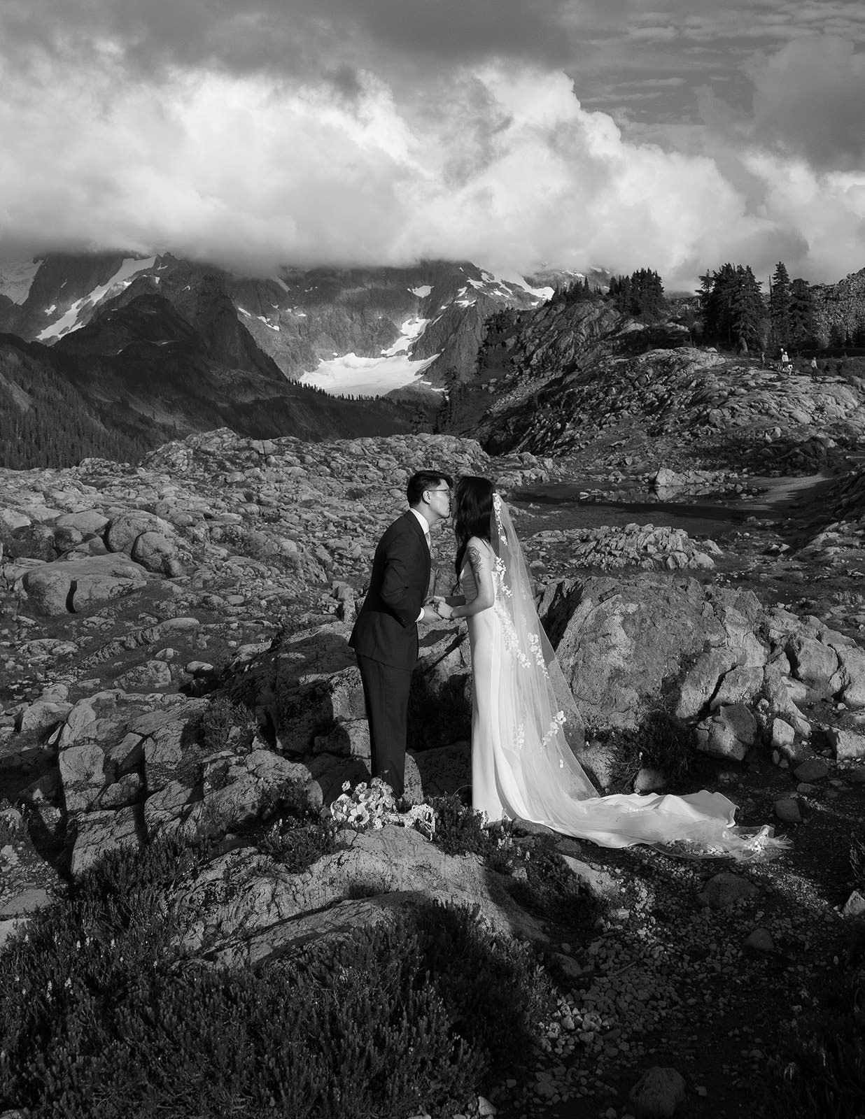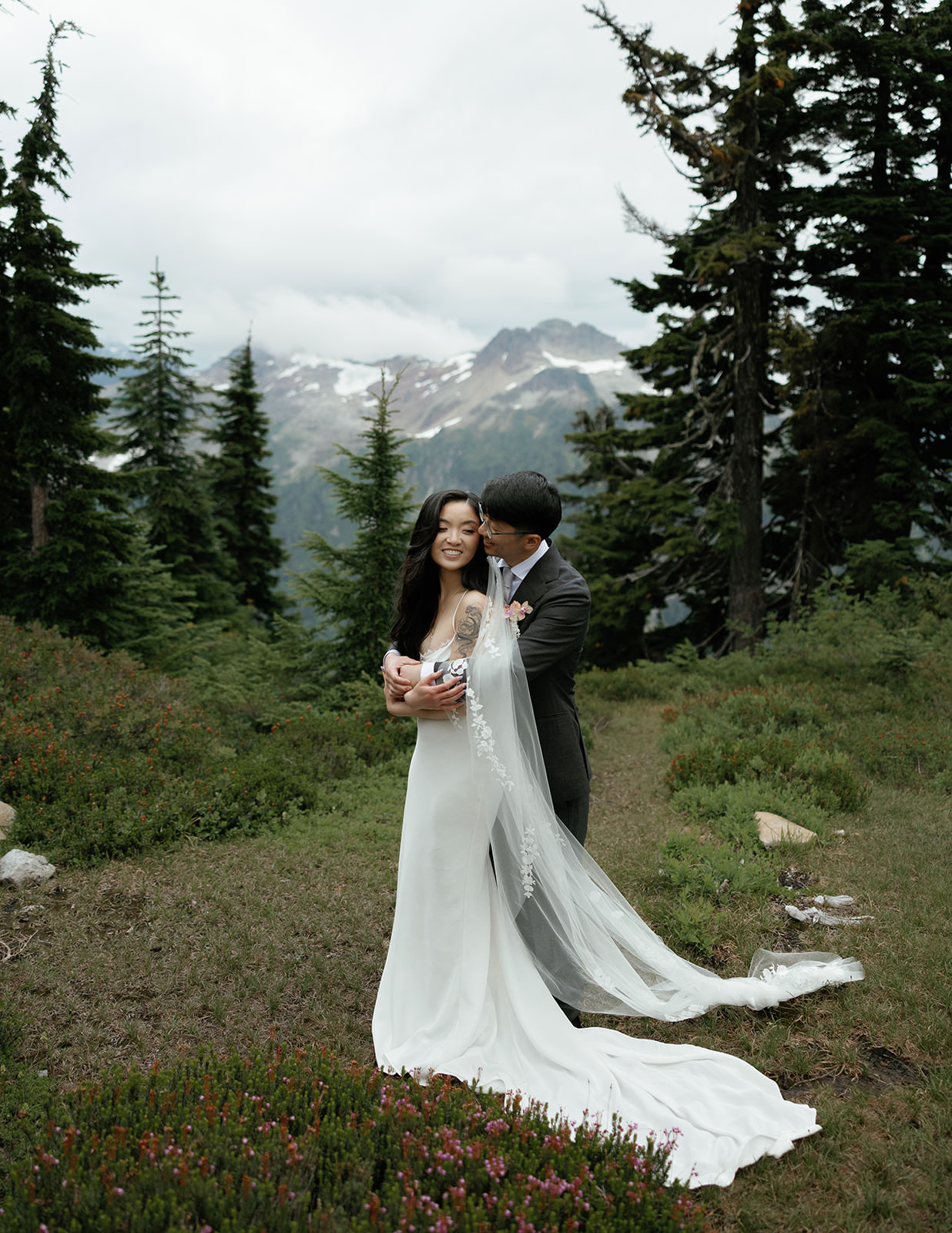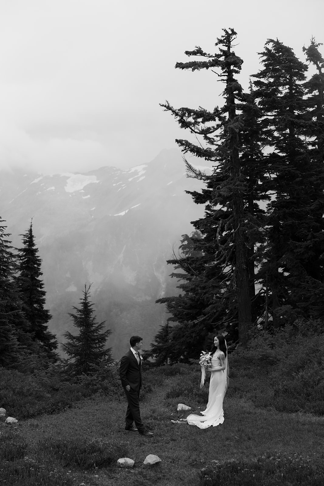 For destination wedding photographers, Mt. Baker presents unique challenges and opportunities. The weather shifts quickly. Light can go from flat overcast to dramatic golden hour in minutes. You need to be comfortable shooting in changing conditions and willing to embrace fog, mist, and moody skies as features rather than obstacles. The result is editorial wedding photography that feels raw and cinematic rather than overly posed.